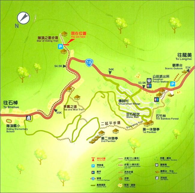 隙頂之星步道資料:二高下嘉義中埔交流道,轉台18省道往阿里山,經觸口、龍美至隙頂,在54.4K右轉100公尺即達登山口。隙頂之星步道長0.2K,來回約10分鐘。