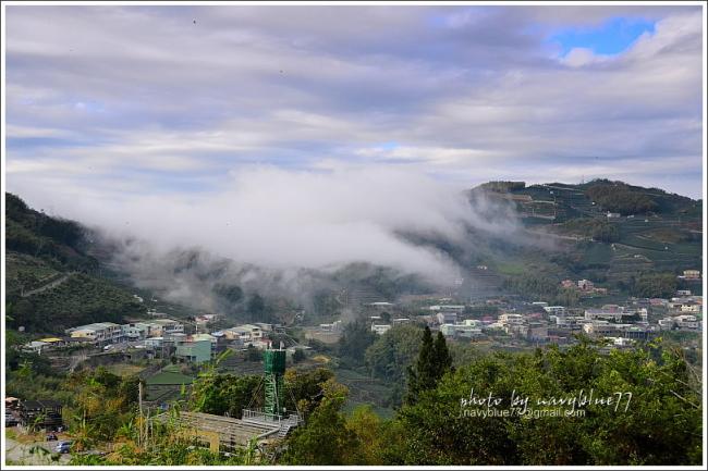 ●由隙頂之星觀景平台望向對山,山腰上的村落即是隙頂,布魯來訪之時,隙頂山(茶林山)與二延平山之間的鞍部,正好有一片雲漫過來,形成美麗的雲瀑。